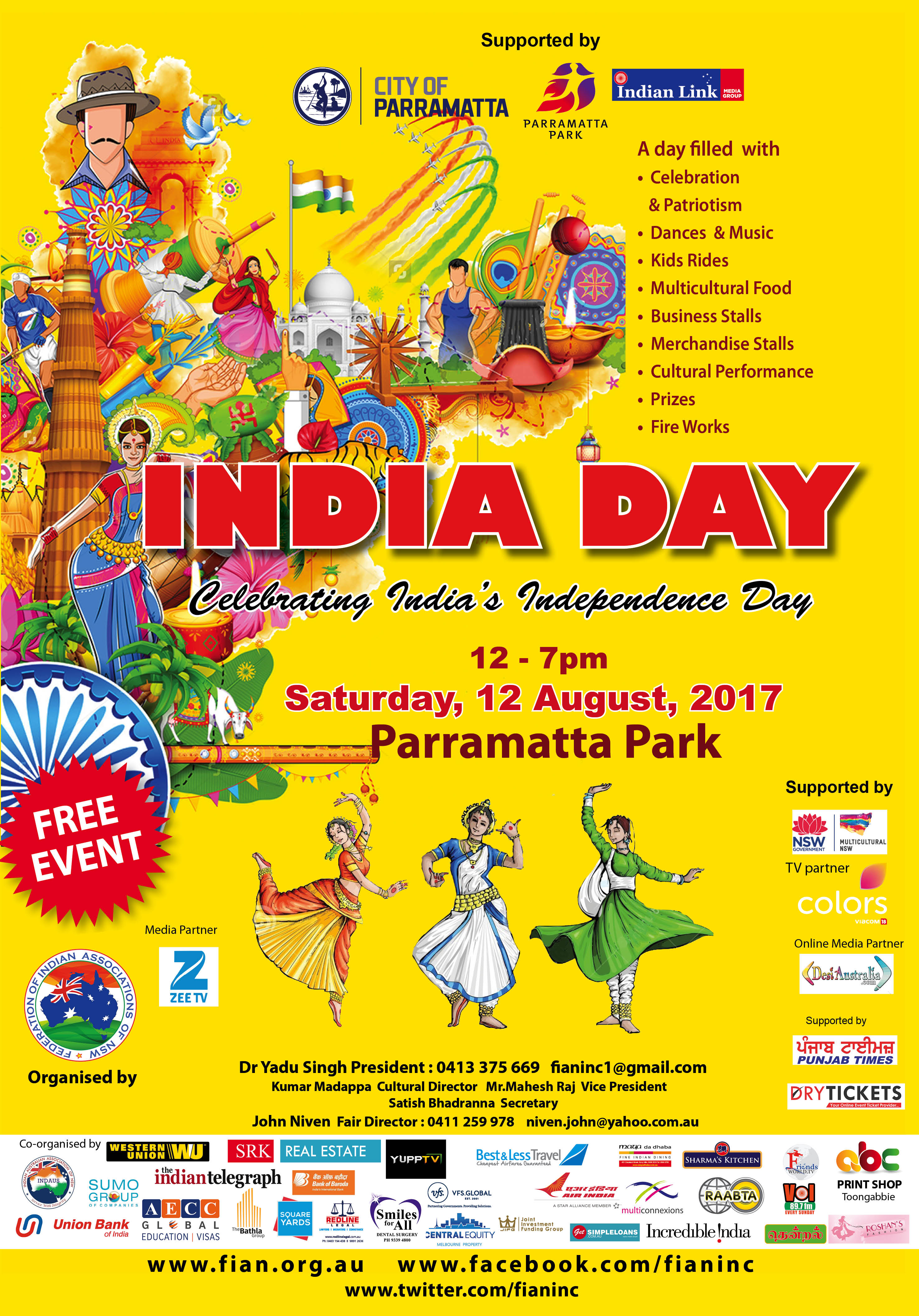 INDIA DAY: celebrating Indian Independence Day, Parramatta, Sunday, 14th August, 2016